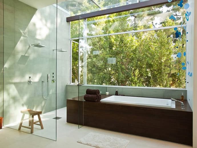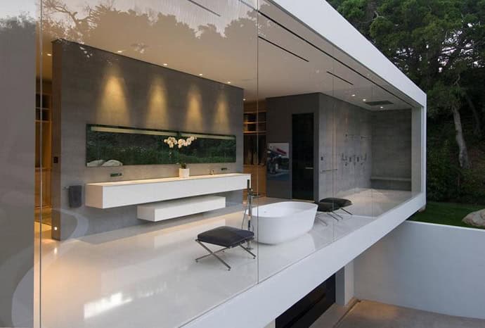 Do you remember this bathroom with transparent glass floor? It was designed to shock all the people that enter your house, and I am sure the gallery below will make a good impression on you too. We gathered a bunch of 20 solutions of transparent bathrooms designed with elegant lines and modern furnishings. It’s pure poetry to have a bathroom with a view, be it a water tower, a tree, a lake or a park. I have to admit that overlooking the garden while having a bath sounds really good! A clear glass shower divider opens up the view to the entire room and makes it seems much bigger. Now, for those who have neighbors close by, there are clear windows available where you can see out but no one can see in. Of course, if you live in the middle of nowhere, there is little need to spend the extra bucks on technologically advanced glass.